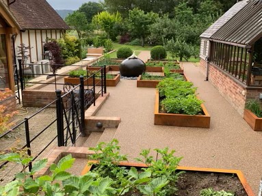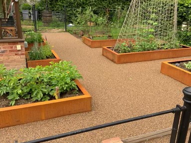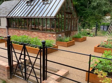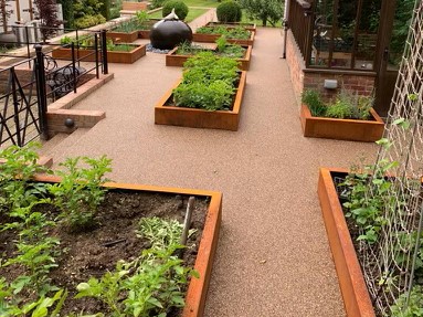 We have created wonderful resin driveways, stunning resin swimming pool areas, delightful resin patio areas and winding resin paths through landscaped gardens. This particular project was a delight to work on. An idyllic country setting the owner of the property had ordered a resin surface for a stunning vegetable garden.